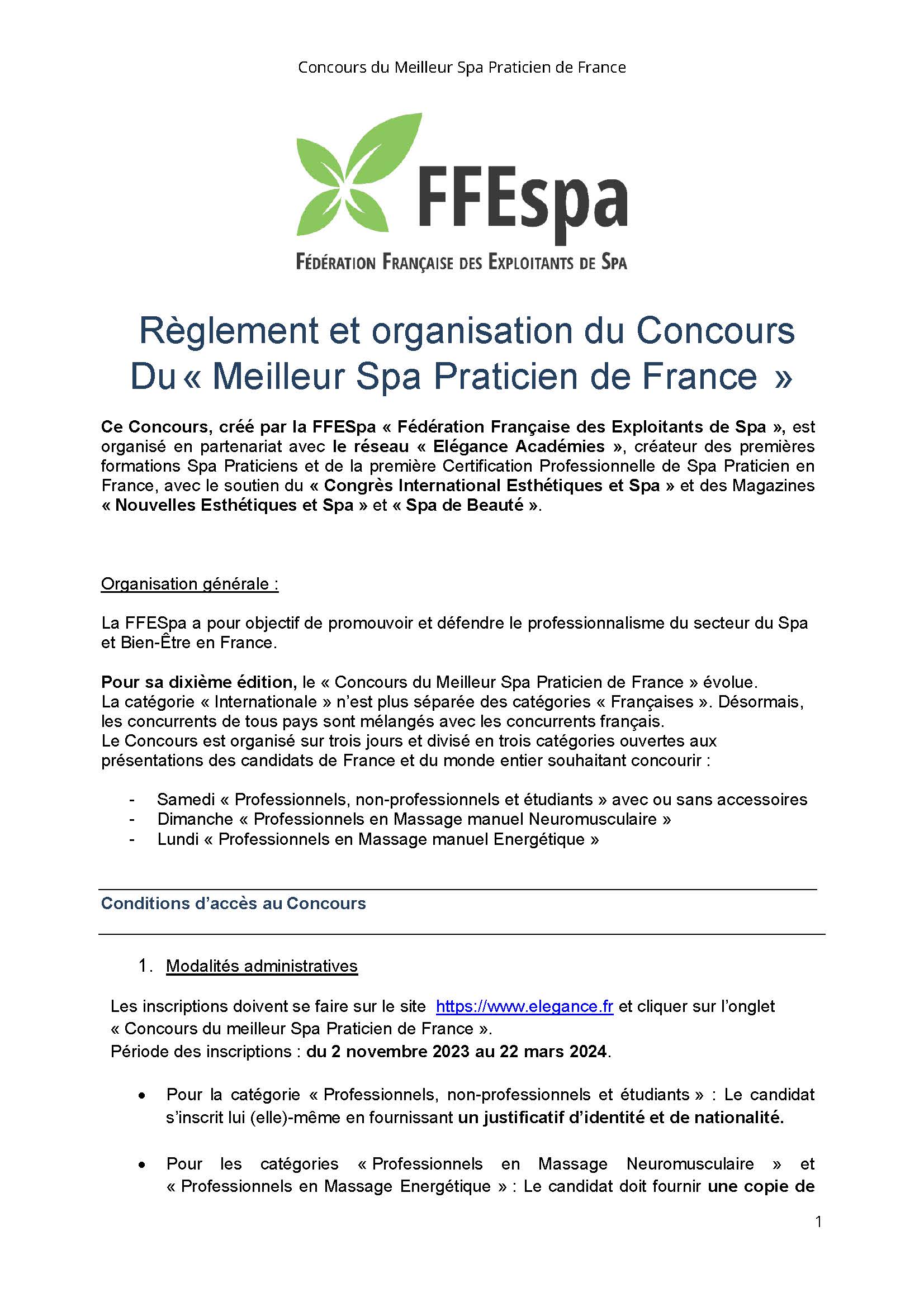 Règlement Concours Meilleur Spa Praticien 2024 VF_Page_1 Published 12 décembre 2023. Size: 1653 × 2339 in Concours Elégance Spa Praticien & Praticien Visage < Previous Next >