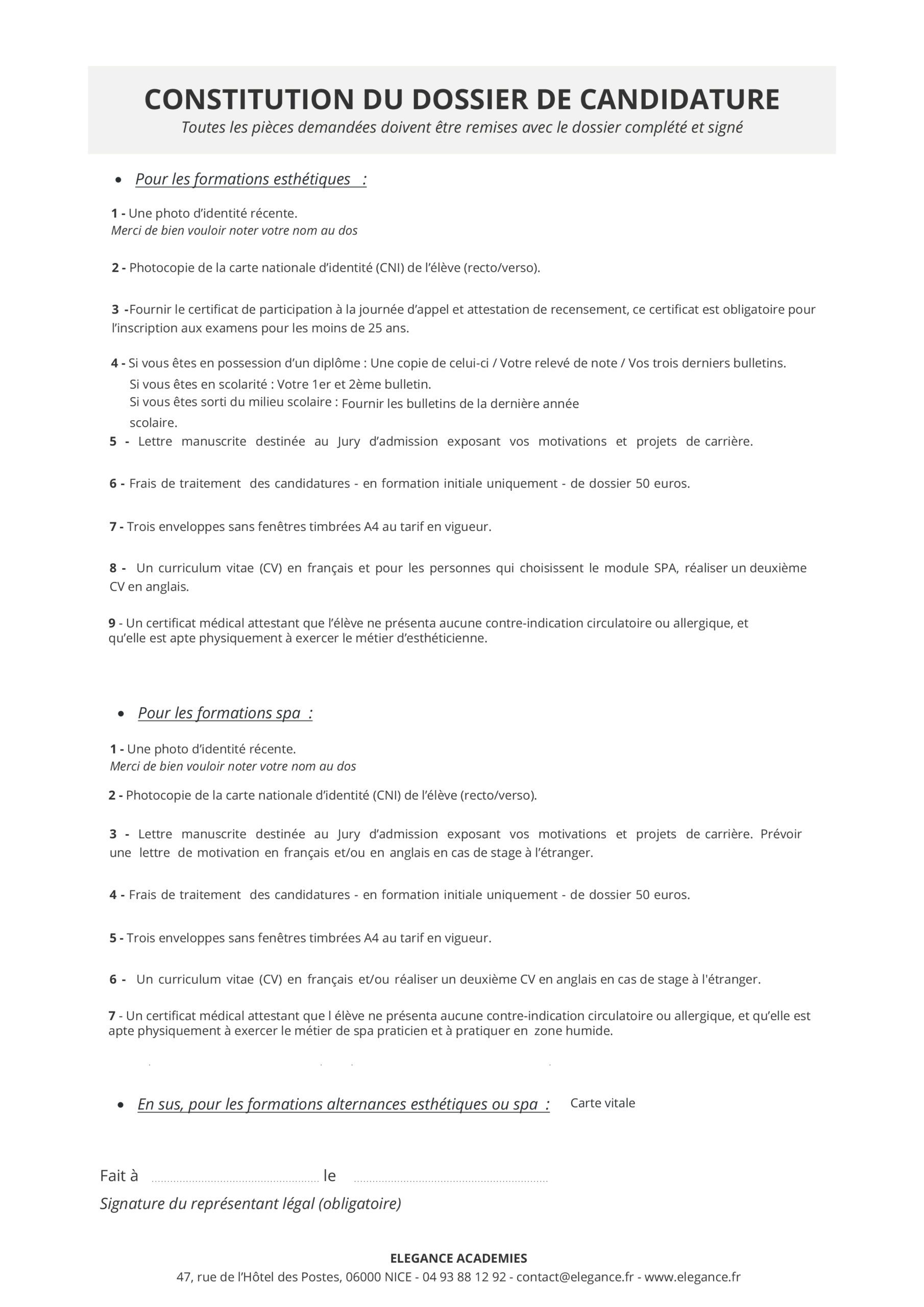 Merci de joindre à votre dossier papier, le règlement des frais de dossier d’inscription de 50 euros par chèque à l’ordre de « Elégance Académies » au 47 rue de l’hôtel des postes 06000 Nice. Plus d’infos au 04.93.88.12.92
